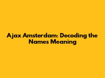 Ajax Amsterdam: Decoding The Name's Meaning