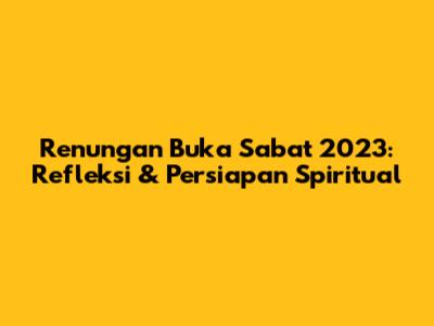 Renungan Buka Sabat 2023: Refleksi & Persiapan Spiritual