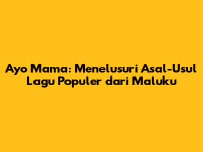 Ayo Mama, lagu yang sangat populer di Indonesia, seringkali diasosiasikan dengan daerah Maluku. Tapi, benarkah lagu ini benar-benar berasal dari Maluku? Mari kita selami lebih dalam untuk mengungkap asal-usul lagu yang penuh semangat dan ceria ini. Kita akan membahas sejarah, lirik, dan bagaimana lagu ini menjadi bagian tak terpisahkan dari budaya Indonesia.