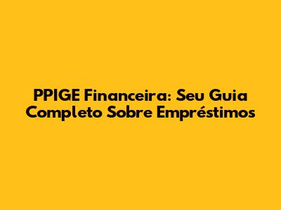 PPIGE Financeira: Seu Guia Completo Sobre Empréstimos