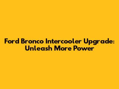 Ford Bronco Intercooler Upgrade: Installation Tips