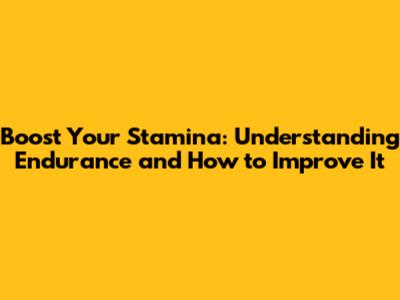 Boost Your Stamina: Understanding Endurance And How To Improve It