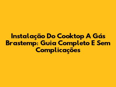 Instalação Do Cooktop A Gás Brastemp: Guia Completo E Sem Complicações