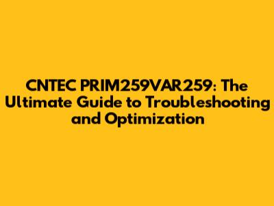 CNTEC PRIM259VAR259: Ultimate Troubleshooting & Optimization