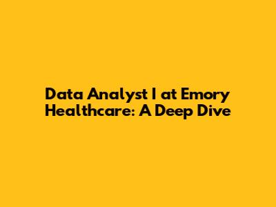 Data Analyst I At Emory Healthcare: A Deep Dive