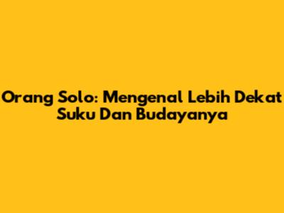 Orang Solo: Mengenal Lebih Dekat Suku Dan Budayanya
