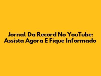 Jornal Da Record No YouTube: Assista Agora E Fique Informado