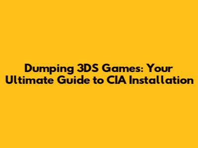 Hey there, gaming enthusiasts! Ever wondered how to back up your favorite 3DS games so you can play them on your console without the cartridge? Or maybe you're curious about installing games in a specific format to enhance your gaming experience? Well, you're in the right place. Today, we're diving deep into the world of 3DS game dumping, specifically focusing on how to dump your installed games and convert them into a CIA format for easy installation. This process, while sounding complex, is achievable with the right tools and a little bit of know-how. So, grab your 3DS, and let's get started. We'll be covering everything from the essential tools you'll need, like the ever-useful GodMode9, to the step-by-step instructions on how to dump your installed games into a CIA file format. This is your comprehensive guide to preserving your games and expanding your 3DS library with ease.