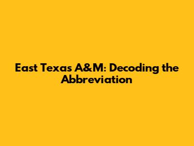 Hey guys! Ever wondered what "East Texas A&M" really means? You're not alone! The world of university names and abbreviations can be super confusing, especially when you're trying to figure out where to apply or just understand what everyone's talking about. Let's break down the East Texas A&M situation, clear up any confusion, and give you the lowdown on what's what. Understanding the nuances of university naming conventions, particularly in the context of large state systems like Texas A&M, can be incredibly helpful for students, parents, and anyone involved in higher education. Knowing the specific campuses and their affiliations allows for more informed decisions and clearer communication. So, buckle up as we unravel the mystery behind the East Texas A&M abbreviation! This journey through the history and structure of the Texas A&M University System will provide clarity and perhaps even a bit of trivia to impress your friends. Whether you're a prospective student, an alumnus, or simply curious, this comprehensive guide will illuminate the topic and ensure you're never again puzzled by this particular abbreviation.