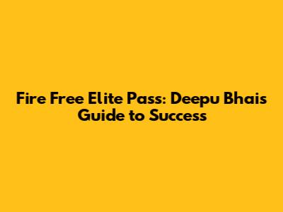 Fire Free Elite Pass: Deepu Bhai's Guide To Success
