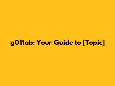 G011ab: Your Guide To [Topic]