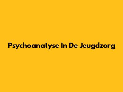 Psychoanalyse In De Jeugdzorg