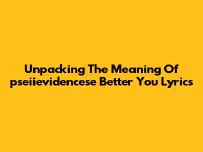 Unpacking The Meaning Of 'pseiievidencese Better You' Lyrics
