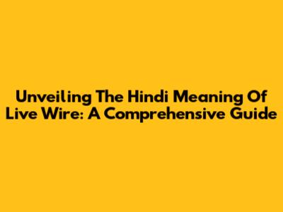 Unveiling The Hindi Meaning Of 'Live Wire': A Comprehensive Guide