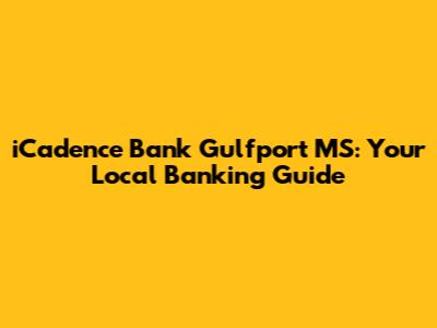 Hey there, folks! Ever found yourself needing some banking services and wondered, "Where's the nearest iCadence Bank in Gulfport, MS?" Well, you're in the right place! This guide is all about helping you navigate the financial landscape in Gulfport, MS, specifically focusing on iCadence Bank. We'll dive into the iCadence Bank Gulfport MS address, its services, and why it might be a great choice for your banking needs. Whether you're a local resident or just passing through, understanding your banking options is super important. So, let's get started and uncover everything you need to know about iCadence Bank in Gulfport, MS!