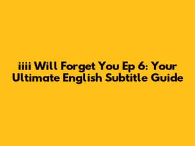 Hey everyone! 👋 Are you as obsessed with "iiii Will Forget You" as I am? If you're anything like me, you're constantly on the lookout for the latest episodes, especially with those sweet, sweet English subtitles. So, let's dive deep into everything related to "iiii Will Forget You Ep 6" and how you can get your fix of English subtitles. We'll cover where to find them, what to look out for, and generally, how to navigate the world of international dramas. Let's get started, shall we?