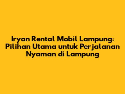 Iryan Rental Mobil Lampung: Solusi Terbaik Perjalanan Anda