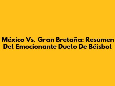 México Vs. Gran Bretaña: Resumen Del Emocionante Duelo De Béisbol