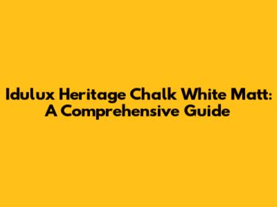 Idulux Heritage Chalk White Matt: A Comprehensive Guide