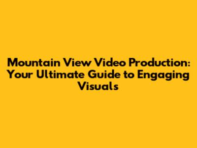 Mountain View Video Production: Your Ultimate Guide