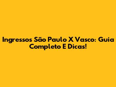 Ingressos São Paulo X Vasco: Guia Completo E Dicas!
