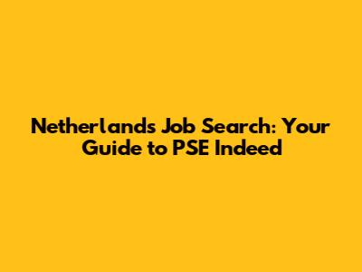 Netherlands Job Search: Your Guide To PSE Indeed