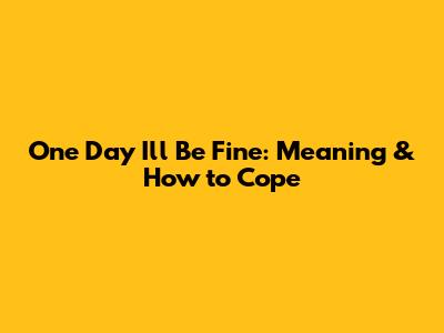 One Day I'll Be Fine: Meaning & How To Cope