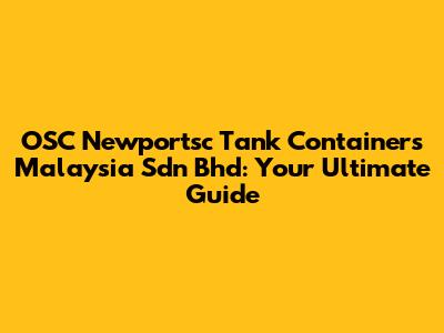 Hey guys! Ever found yourself scratching your head, trying to figure out the ins and outs of tank containers in Malaysia? Well, you've landed in the right spot! Today, we're diving deep into OSC Newportsc Tank Containers Malaysia Sdn Bhd, a major player in the tank container industry. We'll explore what they do, why they matter, and everything else you need to know. Buckle up; it's going to be an informative ride!