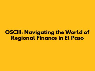 Hey there, finance enthusiasts! Ever wondered how the financial wheels turn in a vibrant city like El Paso? Well, you're in the right place! We're diving deep into the world of OSCIII and regional finance, specifically in the context of El Paso, Texas. Get ready for a journey through the key players, essential concepts, and the overall economic landscape that shapes financial decisions in this dynamic border city. We'll explore the significance of OSCIII – which in this context refers to the specific entities and frameworks – as they influence the financial health and growth of El Paso. This discussion will cover topics from local investment strategies to the impact of international trade, especially considering El Paso's unique geographical location. Let's break down the world of regional finance, El Paso style, and uncover some hidden gems of financial knowledge. Ready to become a finance whiz in El Paso? Let's get started!