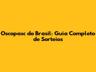 Oscopasc Do Brasil: Guia Completo De Sorteios