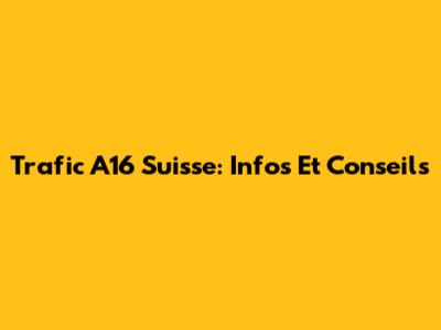 Trafic A16 Suisse: Infos Et Conseils