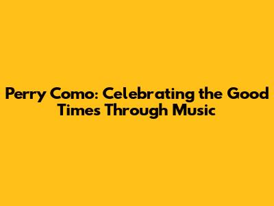 Celebrating the Good Times: Why Perry Como Matters Today
