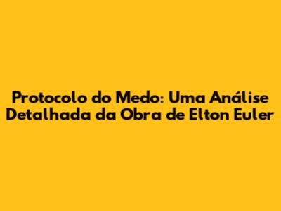 O Protocolo do Medo é um livro escrito por Elton Euler que se propõe a ser um guia prático para lidar com o medo e suas diversas manifestações. Diferente de outras obras sobre o tema, o livro de Euler não se limita a teorias e conceitos abstratos. Ele oferece um conjunto de ferramentas, estratégias e exercícios que visam ajudar o leitor a identificar, compreender e, finalmente, superar seus medos. O livro é estruturado de forma clara e objetiva, com linguagem acessível e exemplos práticos, tornando a leitura agradável e fácil de aplicar. O objetivo principal do Protocolo do Medo é capacitar o leitor a assumir o controle de suas emoções e a não deixar que o medo o impeça de alcançar seus objetivos e sonhos. O livro aborda diferentes tipos de medo, desde os mais comuns, como o medo de falar em público ou o medo do fracasso, até medos mais profundos e enraizados, como o medo da morte ou da solidão. Através de uma combinação de autoconhecimento, técnicas de respiração, visualização e reprogramação mental, o leitor é guiado em um processo de transformação pessoal que o leva a enfrentar seus medos e a viver uma vida mais corajosa e autêntica.