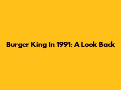 Burger King In 1991: A Look Back