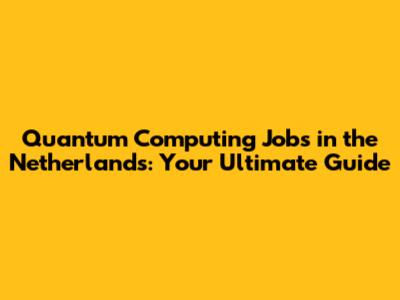 Where to Find Quantum Computing Jobs in the Netherlands
