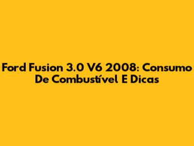Ford Fusion 3.0 V6 2008: Consumo De Combustível E Dicas