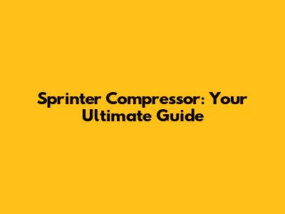 Sprinter Compressor: Everything You Need To Know