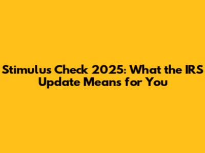 Stimulus Check 2025: What The IRS Update Means For You