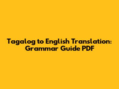 Tagalog To English Translation: Grammar Guide PDF