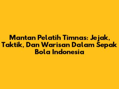 Mantan Pelatih Timnas: Jejak, Taktik, Dan Warisan Dalam Sepak Bola Indonesia