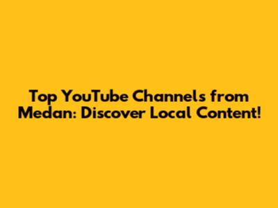 Top YouTube Channels From Medan: Discover Local Content!
