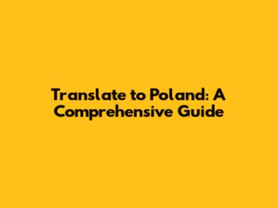 Translate To Poland: A Comprehensive Guide