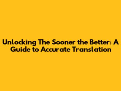 Unlocking 'The Sooner The Better': A Guide To Accurate Translation