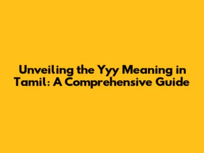 Unveiling The 'Yyy' Meaning In Tamil: A Comprehensive Guide