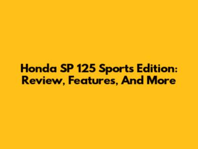 Honda SP 125 Sports Edition: Review, Features, And More