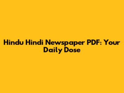 Hindu Hindi Newspaper PDF: Your Daily Dose